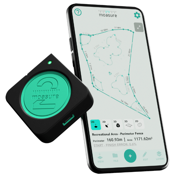 Moasure gör det enkelt att mäta komplexa former. Ingen GPS, data eller fri sikt krävs